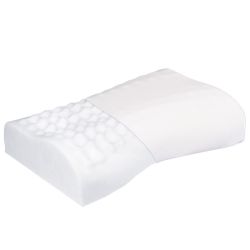 - поверхность подушки с ортопедическим эффектом имеет мягкие массажные элементы, которые обеспечивают разгрузку мышц шеи и плечевого пояса и свободную циркуляцию воздуха