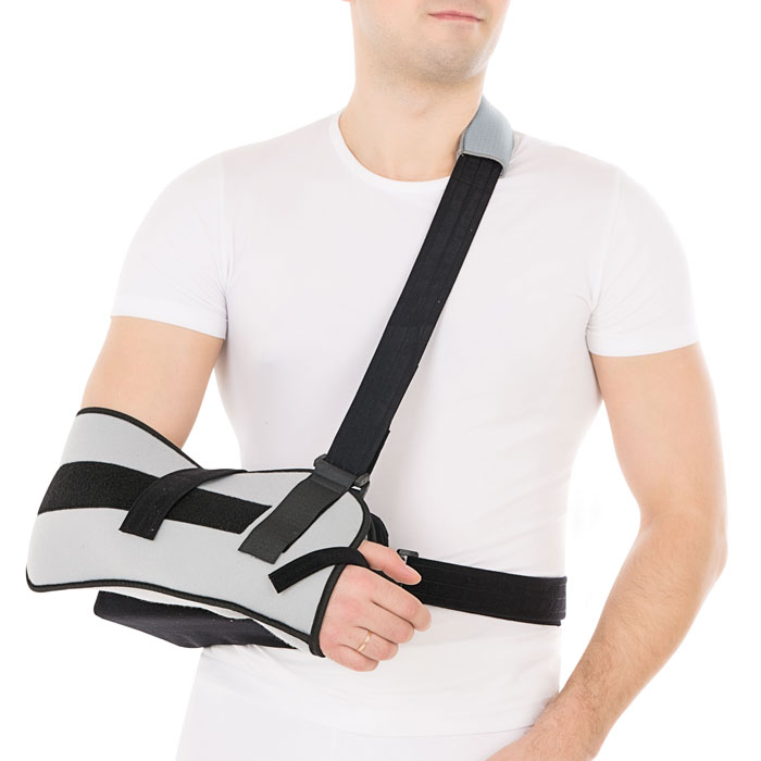 - фиксация верхней конечности в положении внутренней ротации и отведения на 30°