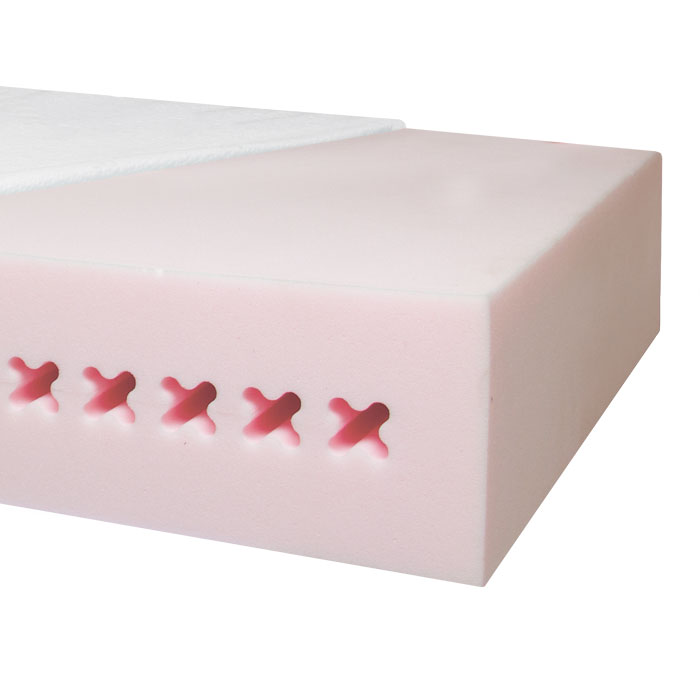 - в поперечном направлении по всей длине матраса расположены открытые воздушные каналы специальной формы – 3D отверстия, обеспечивающие полную вентиляцию матраса, комфортный температурный режим и увеличивающие упругость изделия
