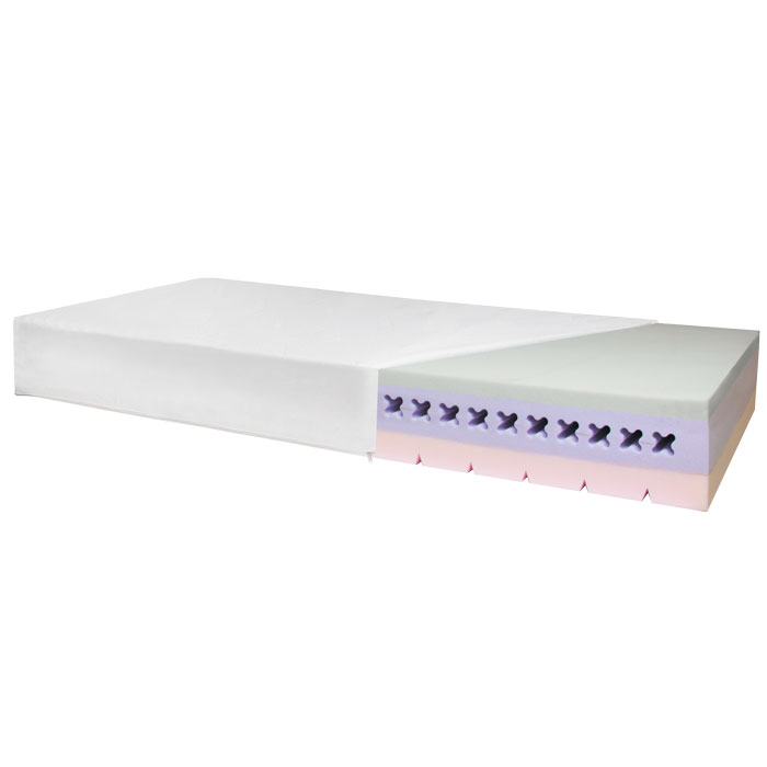 - верхний слой изготовлен из пенополиуретана с «эффектом памяти», принимающего форму тела человека под воздействием веса и температуры тела, что придает высокую степень комфорта